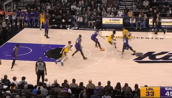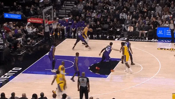 东契奇交球给詹姆斯再上前接其手递手回传完成“Get“配合后立即衔接和艾顿的挡拆配合,行进间将威少摆脱在身后面对沉退的雷诺,炸球急停后直接起抛投惩罚。