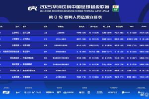 体育资讯04月19日讯 官方公布2025赛季中超第8轮裁判选派安排,唐顺齐作为主裁执法焦点战国安vs泰山,李海新吹罚海港vs蓉城。
