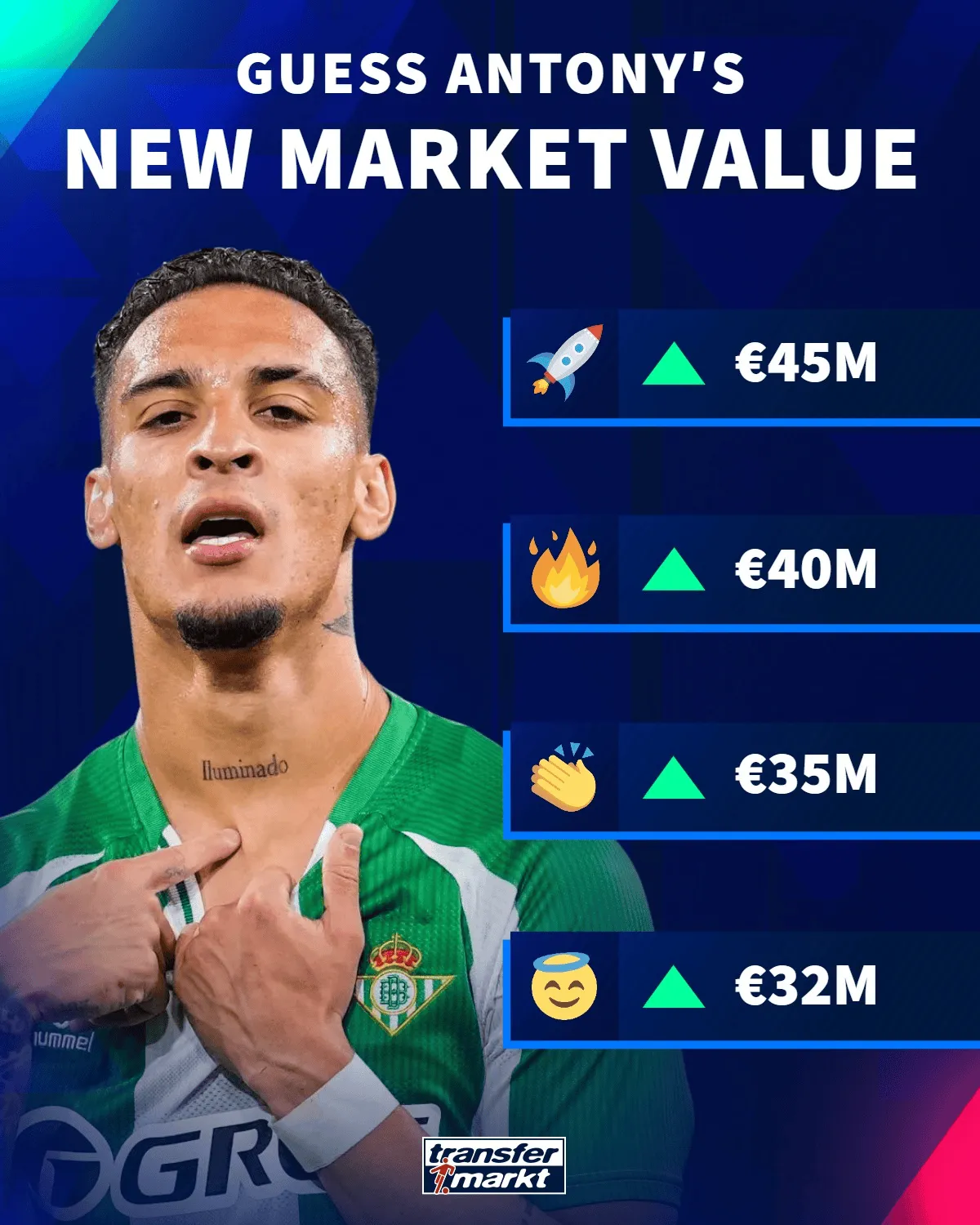 虎扑03月12日讯 德国转会市场近期将更新西甲球员的身价,安东尼的身价将确定会上涨。